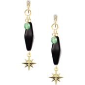 ブラックとゴールドのコントラストに、淡いグリーンの天然石がアクセント。