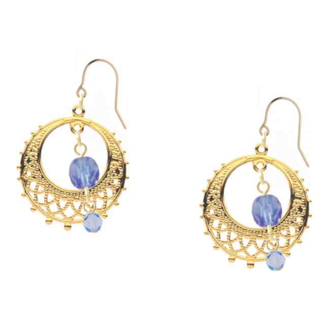 月の輝きと透明感ブルーが揺れる、エキゾチックピアス