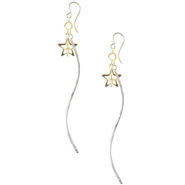 流れるようなシルバーラインに、小さな星のきらめきを添えたロングピアス。